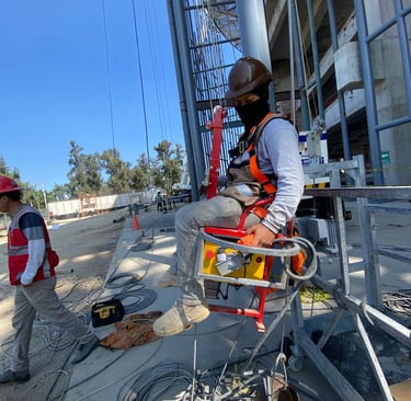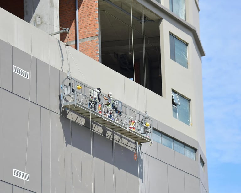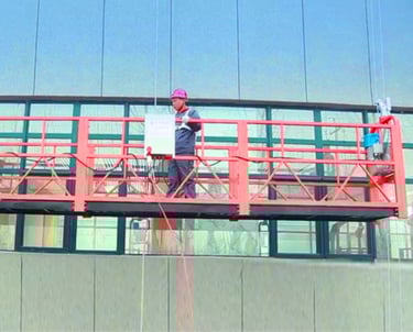 Plataforma motorizada diseñada para trabajos en altura, asegurando seguridad, estabilidad y versatilidad en actividades de construcción, mantenimiento, limpieza de fachadas e instalaciones especializadas.
